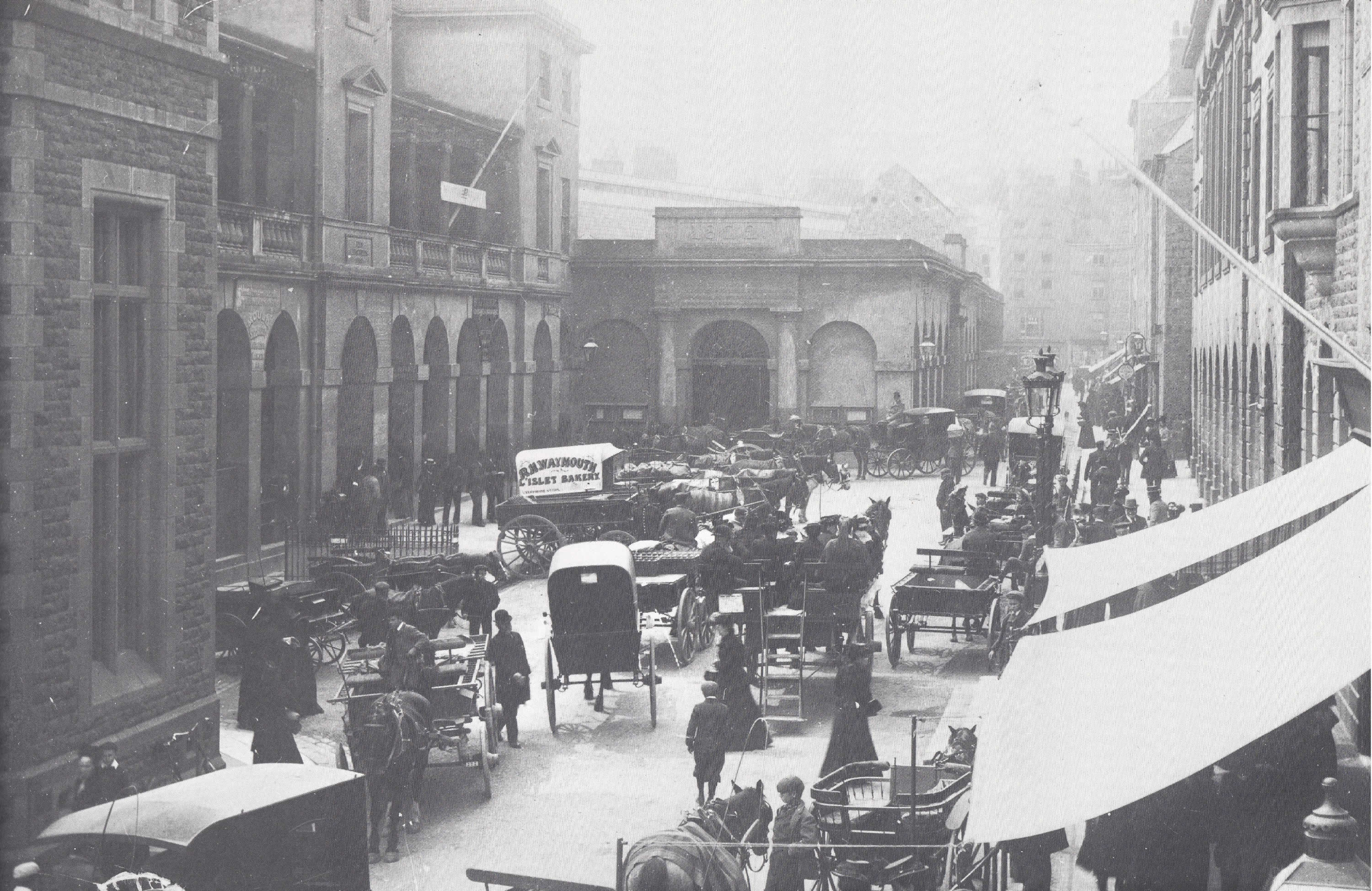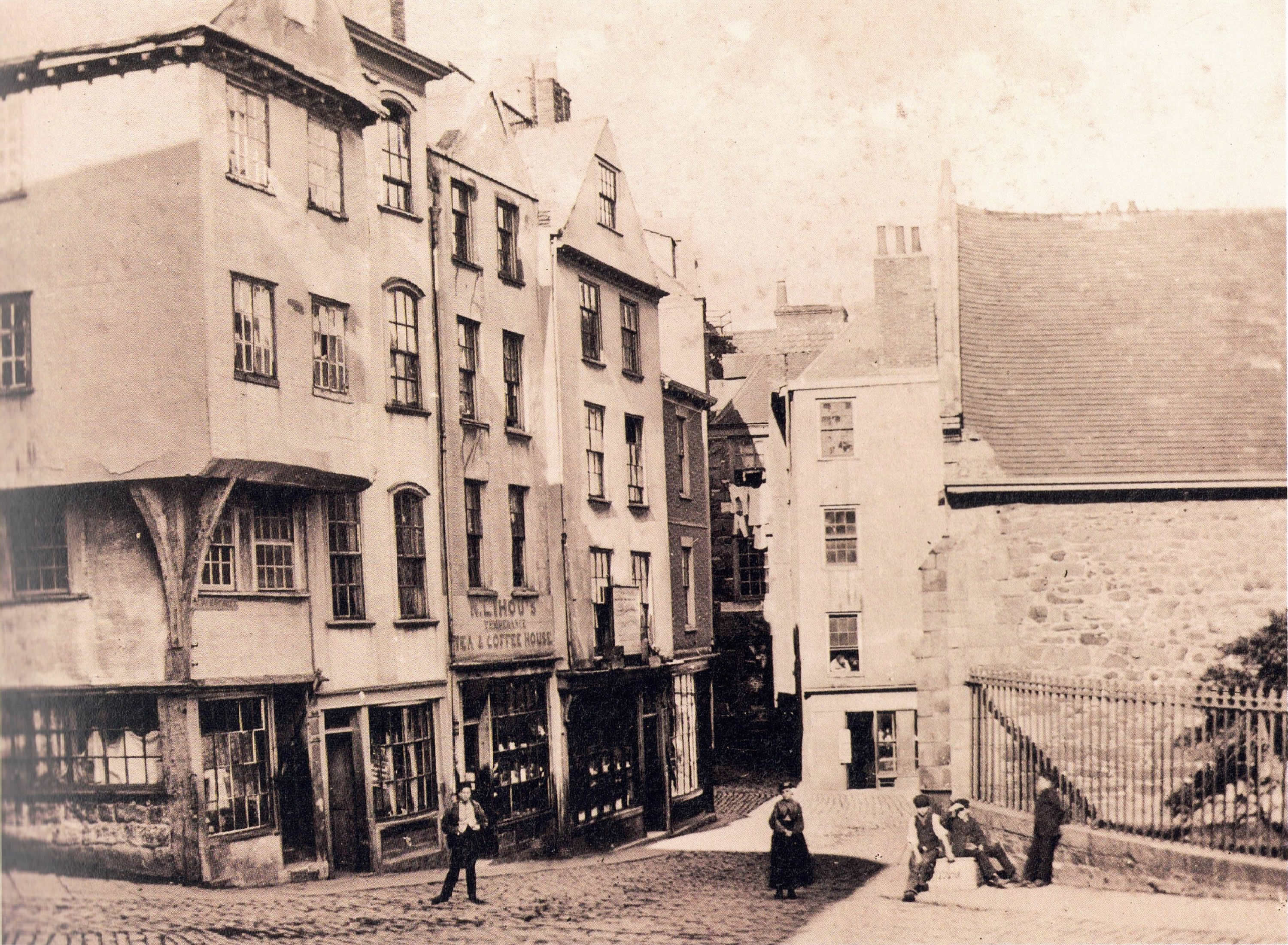 So it was that the Guernsey Markets, previous to the building of the present market building, was set up at the bottom of High Street, in the neighbourhood of the Town Church and the narrow lanes and passages leading from there to the beach and the pier.